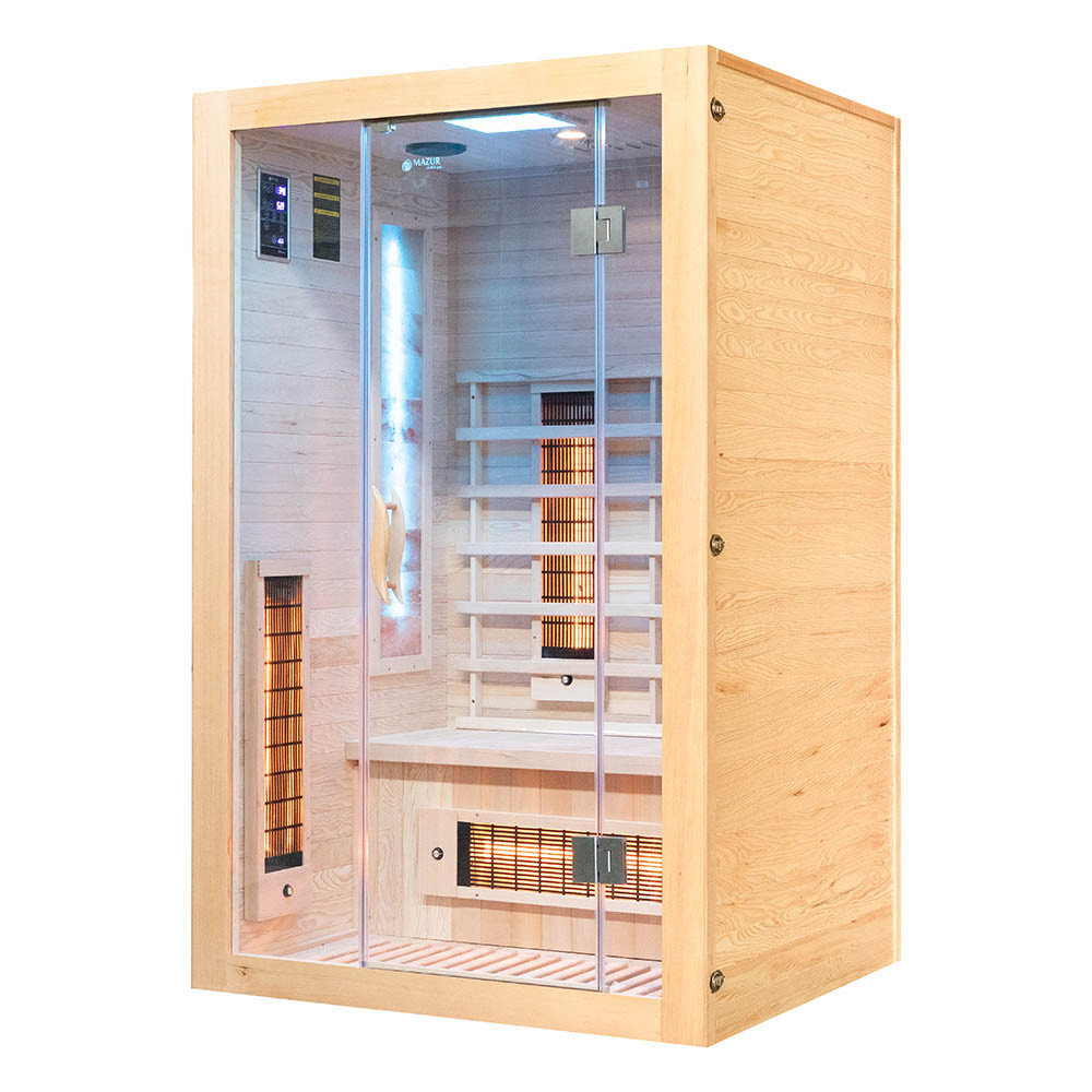 MO-EA2R Infrared sauna with Himalayan salt stones | Ready to Assemble | Natural Wood