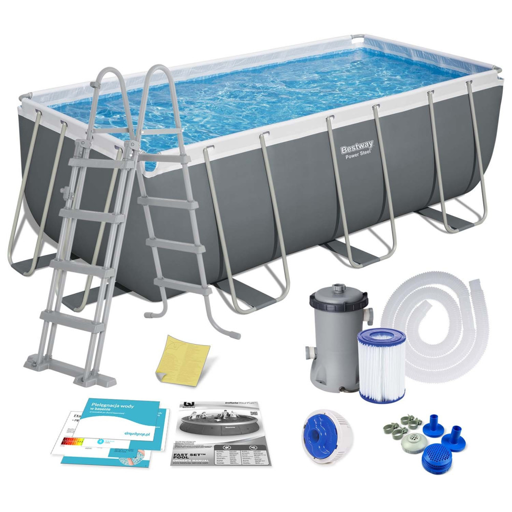Bestway Power Steel 412 × 201 × 122 cm garden pool - a complete set with filtration. The perfect solution for your family! Bestway Power Steel frame pool is a great choice for those who want to enjoy a refreshing bath in their own garden. Thanks to the dimensions of 412 × 201 × 122 cm and a capacity of 8 124 liters, it provides comfortable conditions for relaxation and fun.