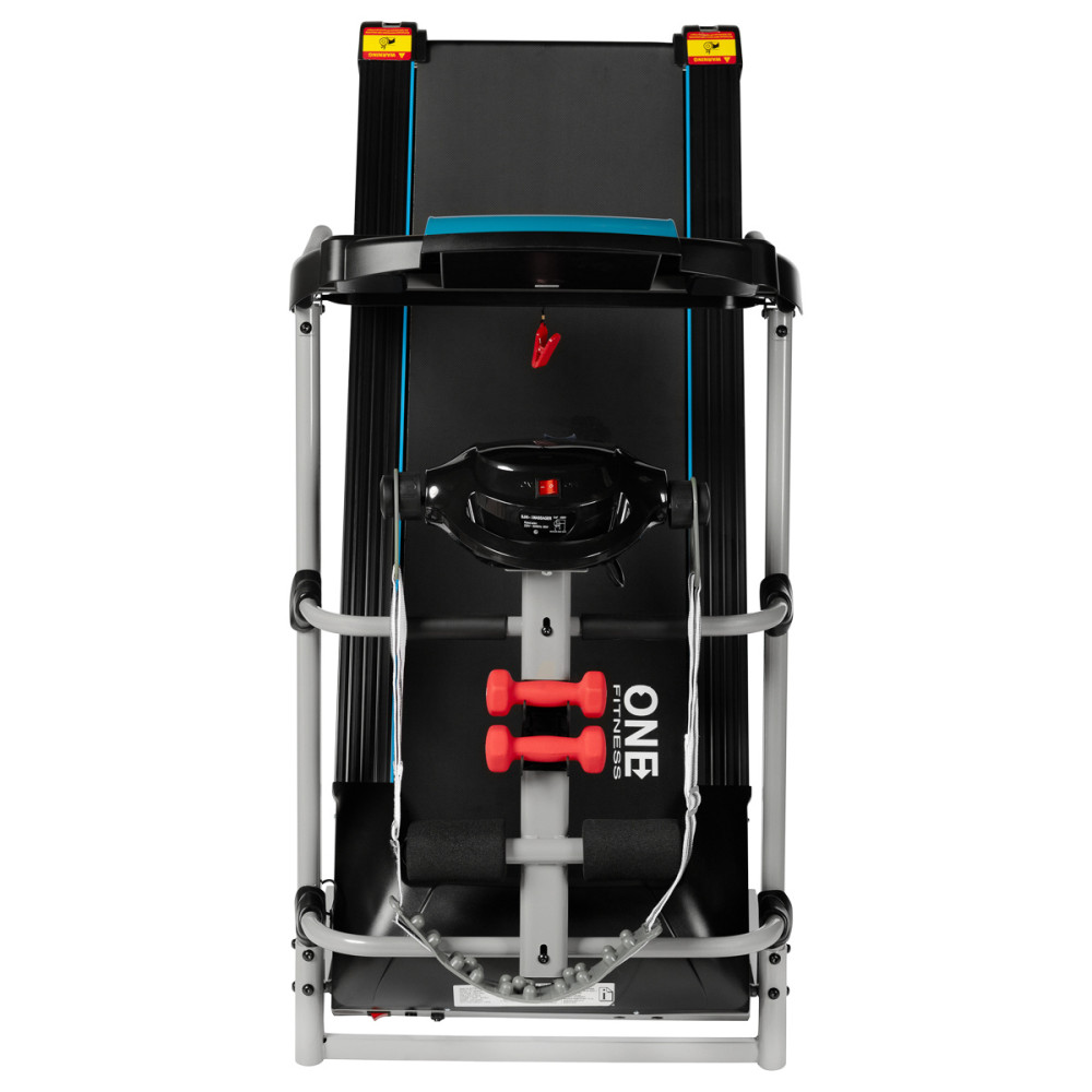 be4540 One Fitness is a combination of a treadmill with a massager. The set also includes a rotary disc and dumbbells.
