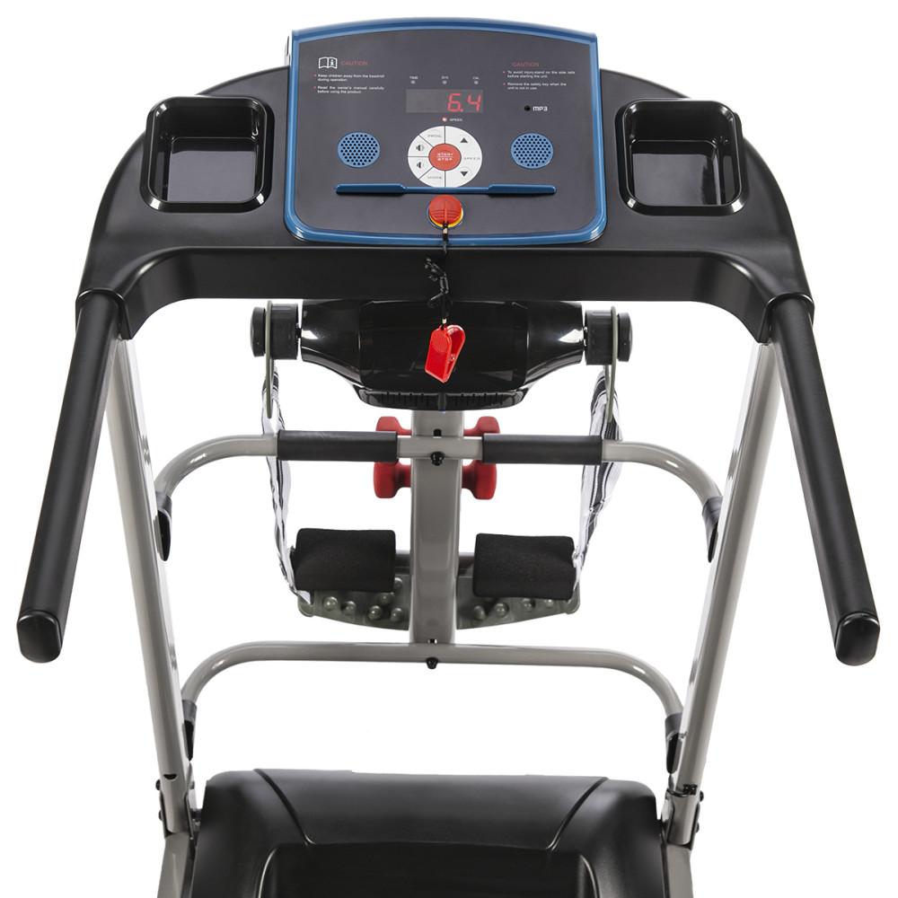 is a compact product equipped with an anti -slip runny belt and a motor with automatic speed adjustment . The product is made of the best quality materials. It is a stable and safe device that has been adapted to conduct training at home. Thanks to its size and shock absorber system, the structure provides a comfortable space for exercise. Ergonomic control panel, It allows you to conveniently manage computer functions, such as: time, speed and distance. An undoubted plus will also be built -in speakers, through which our favorite music will resound thanks to the audio input.