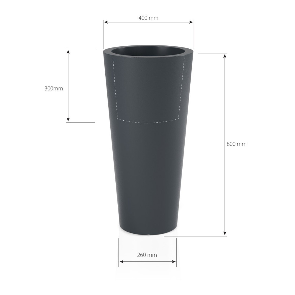Thanks to the use of very durable polyethylene, the Habana planter is characterized by high mechanical resistance, resistance to temperature differences and UV radiation. These features make Habana planters suitable for use as garden planters decorating gardens, balconies or terraces.