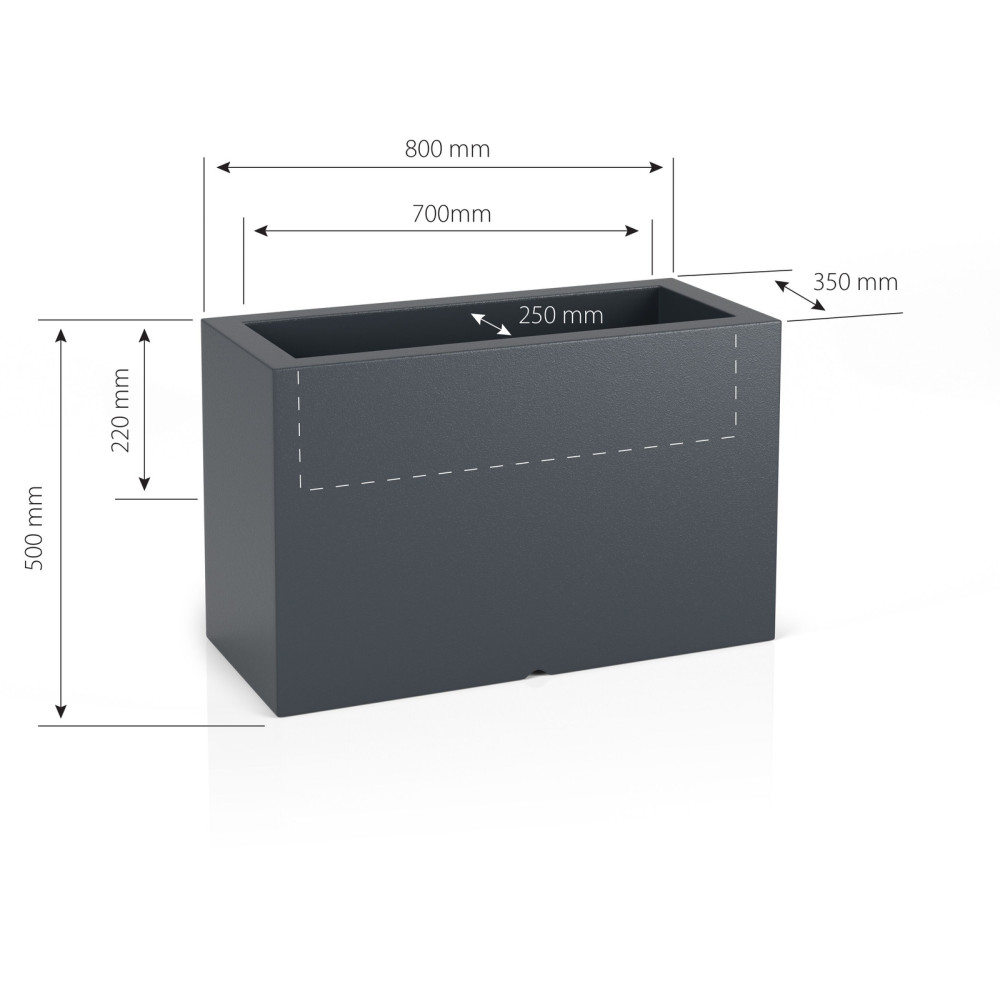 Thanks to the use of very durable polyethylene, the Lungo Maxi flowerpot is characterized by high mechanical resistance, resistance to temperature differences and UV radiation. These features make the Lungo Maxi planters suitable for use as garden planters decorating gardens, balconies or terraces.