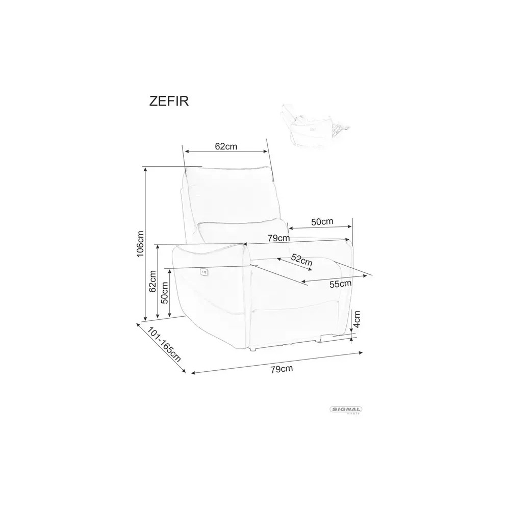 The Zefir Velvet recliner armchair is an elegant and functional piece of furniture, perfect for modern interiors. Upholstered in high-quality Bluvel velvet fabric in a grey color, it offers both comfort and style. The black metal frame ensures durability and stability. The armchair is equipped with an electric recliner function and an integrated USB port in the control panel, allowing you to charge mobile devices.
