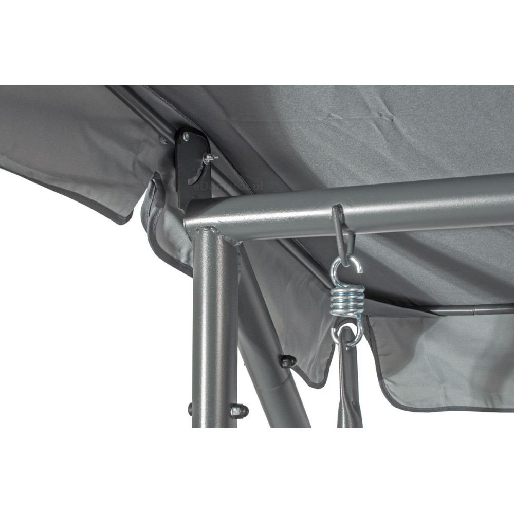 A large and safe garden swing on a very stable and durable frame that will ensure many years of use. The swing can accommodate 4 people. The undoubted advantages of the swing are drink trays, additional pillows and an adjustable brown canopy.