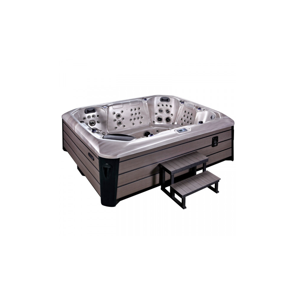 Designed for optimal relaxation, the tub offers 7 seats and 1 lounger, allowing comfortable rest for the whole family or a larger group of friends. -