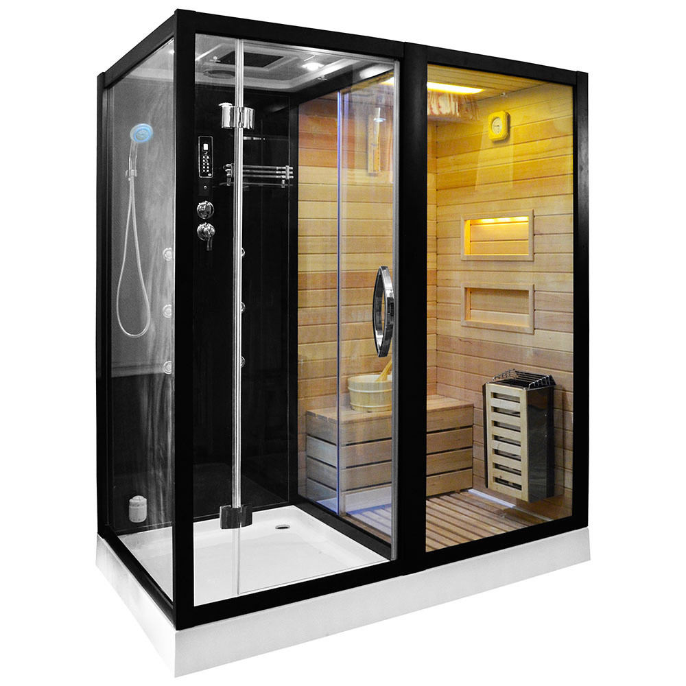 MO-1752B RIGHT TRIO, dry sauna, steam sauna and shower cabin 180X110X223CM | Panoramic Glass | For Family and Friends