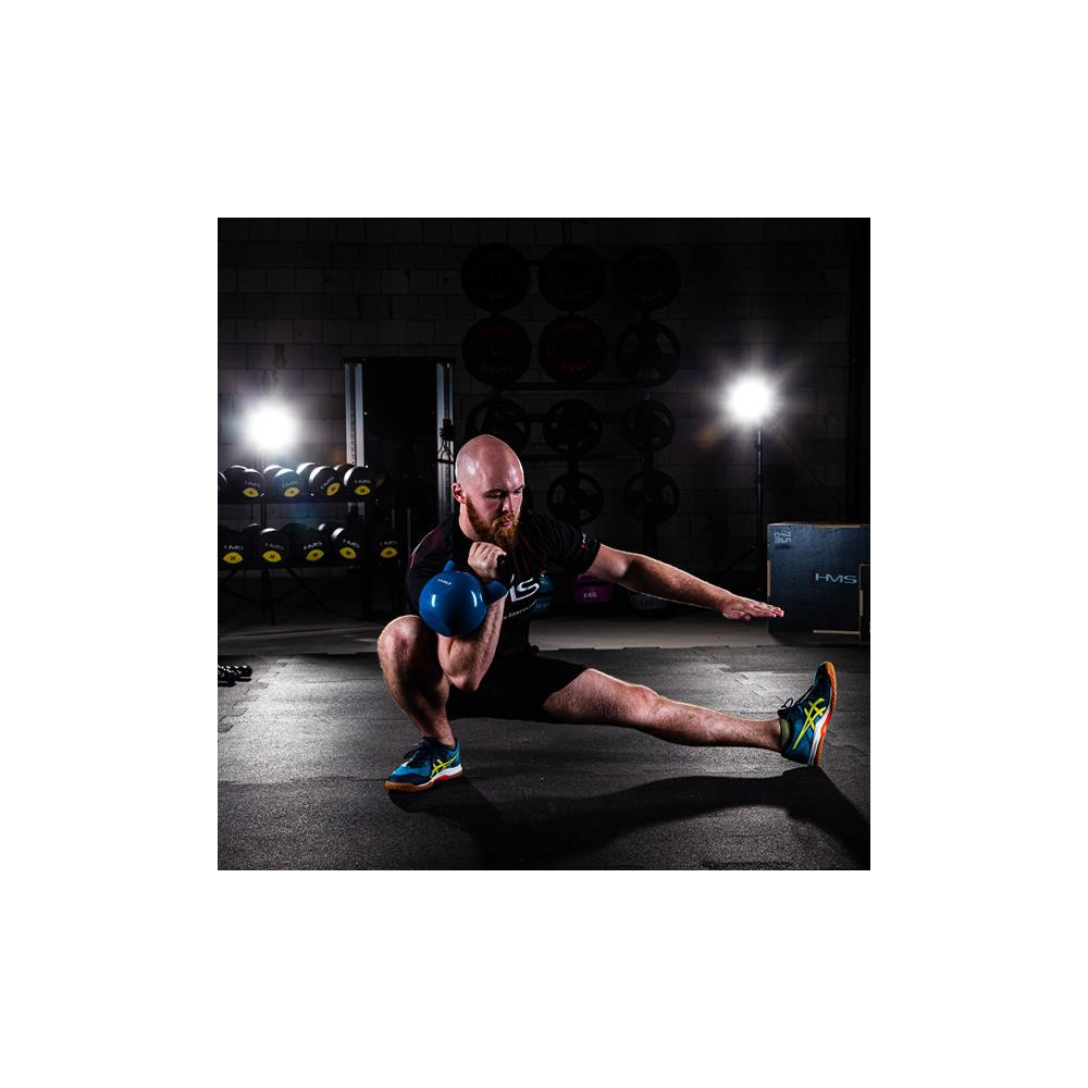 KNV HMS is a family of Kettlebell weights made of high-quality cast iron, covered with vinyl and equipped with a solid handle. The materials used and the high quality of workmanship prove both their exceptional utility and aesthetic values. A very important element of KNV HMS weights is their ergonomic shape and the aforementioned comfortable handle. Thanks to these features, they ensure safety during exercises and lie securely in the hand. The flat bottom guarantees stable support, and the available weight range allows you to precisely match the load to your needs. Kettlebell weights are extremely universal. Training with KNV HMS strengthens muscles, perfectly develops motor coordination, while increasing the overall efficiency of the body. With their help, you can exercise almost all muscle groups. Their great advantage is the possibility of performing so-called multi-joint exercises, activating muscles that are often omitted during classic strength training. They can also be an important complement to free weight training.