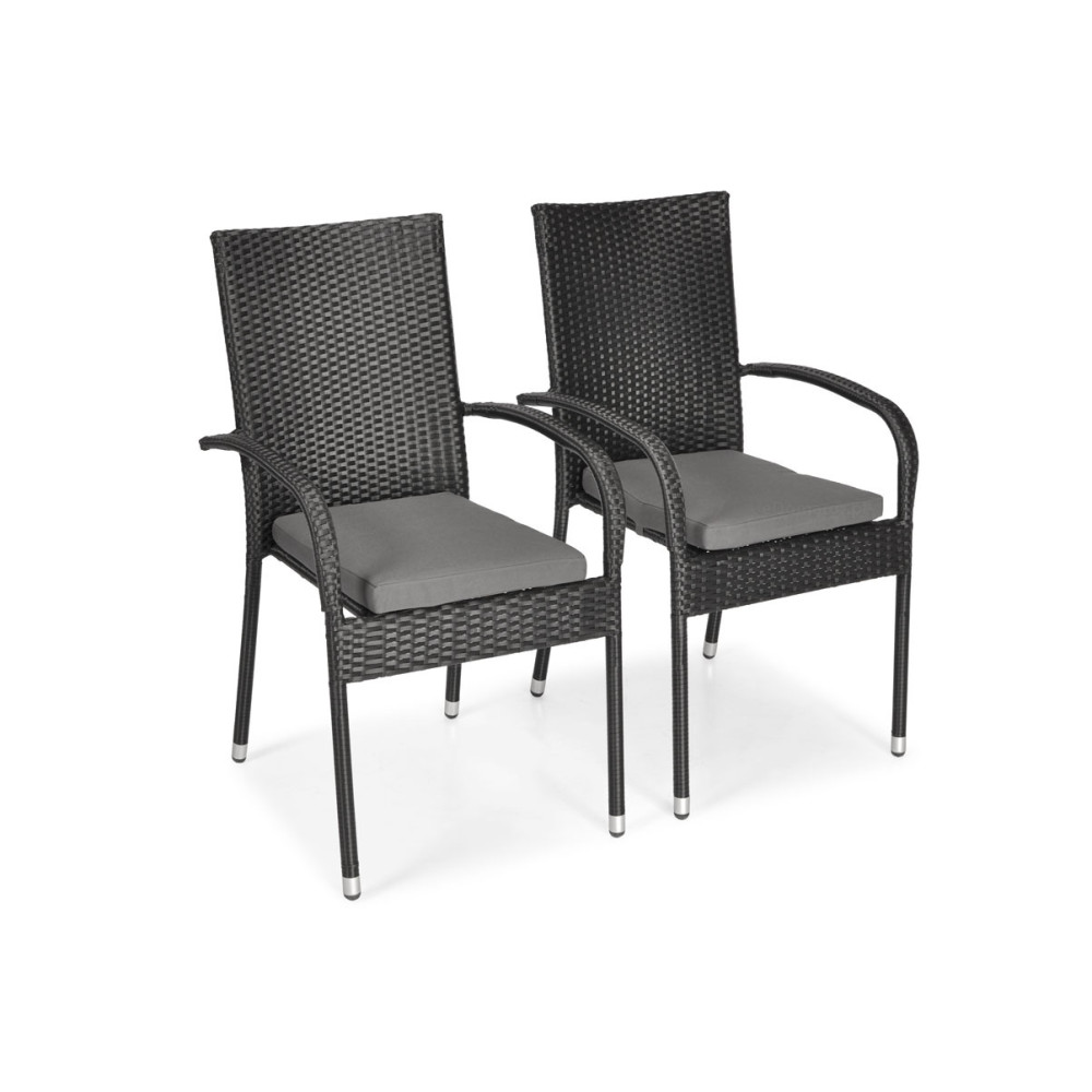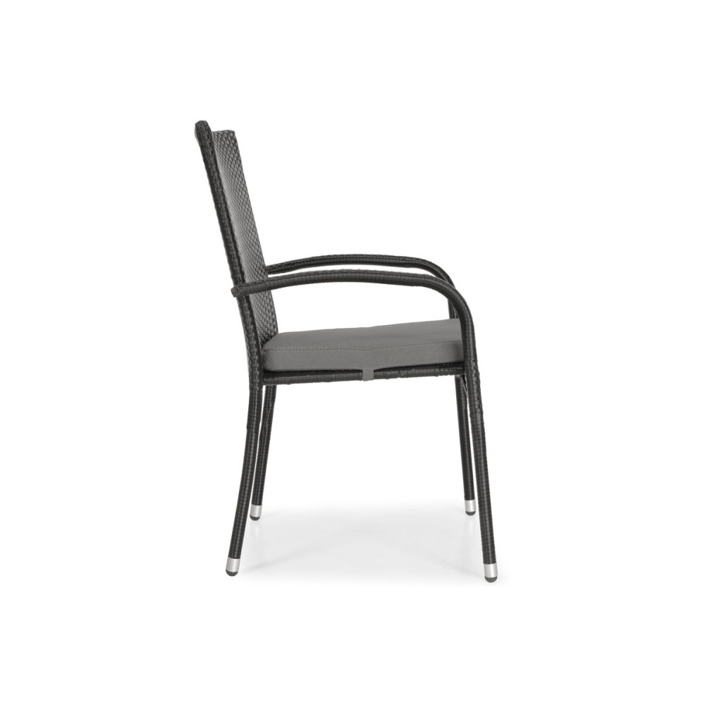 Garden chair made of elegant black technorattan. Garden armchair with cushion. The chairs are solid and have a timeless look. Perfect shaping and armrests ensure perfect rest and relaxation.