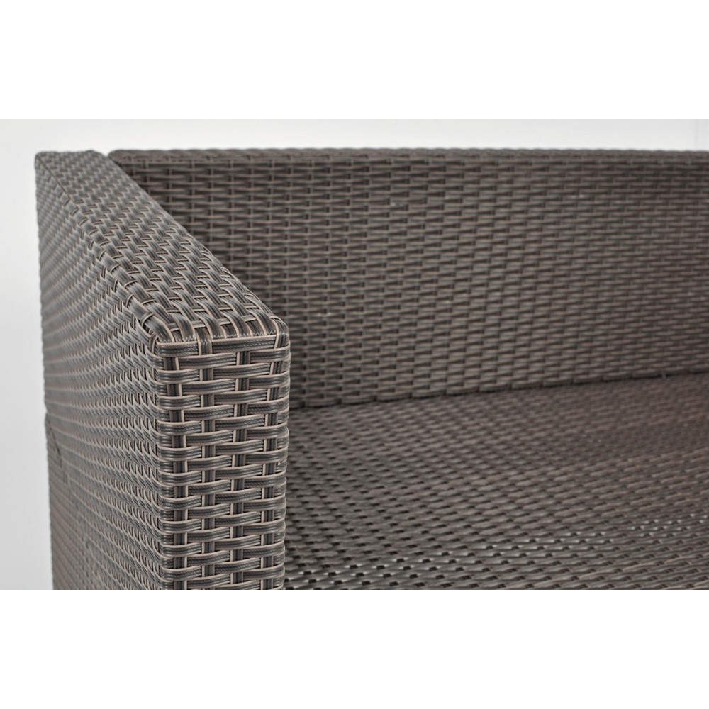 The construction of the garden sofa consists of a solid metal frame, which is wrapped with high-quality technorattan fibers. Technorattan is currently an extremely popular and valued material for manufacturing garden furniture. Thanks to its high durability and resistance to weather, rain and UV radiation, it retains its properties for many years. It is also comfortable to use, as it does not require special care treatments or seasonal renovation.