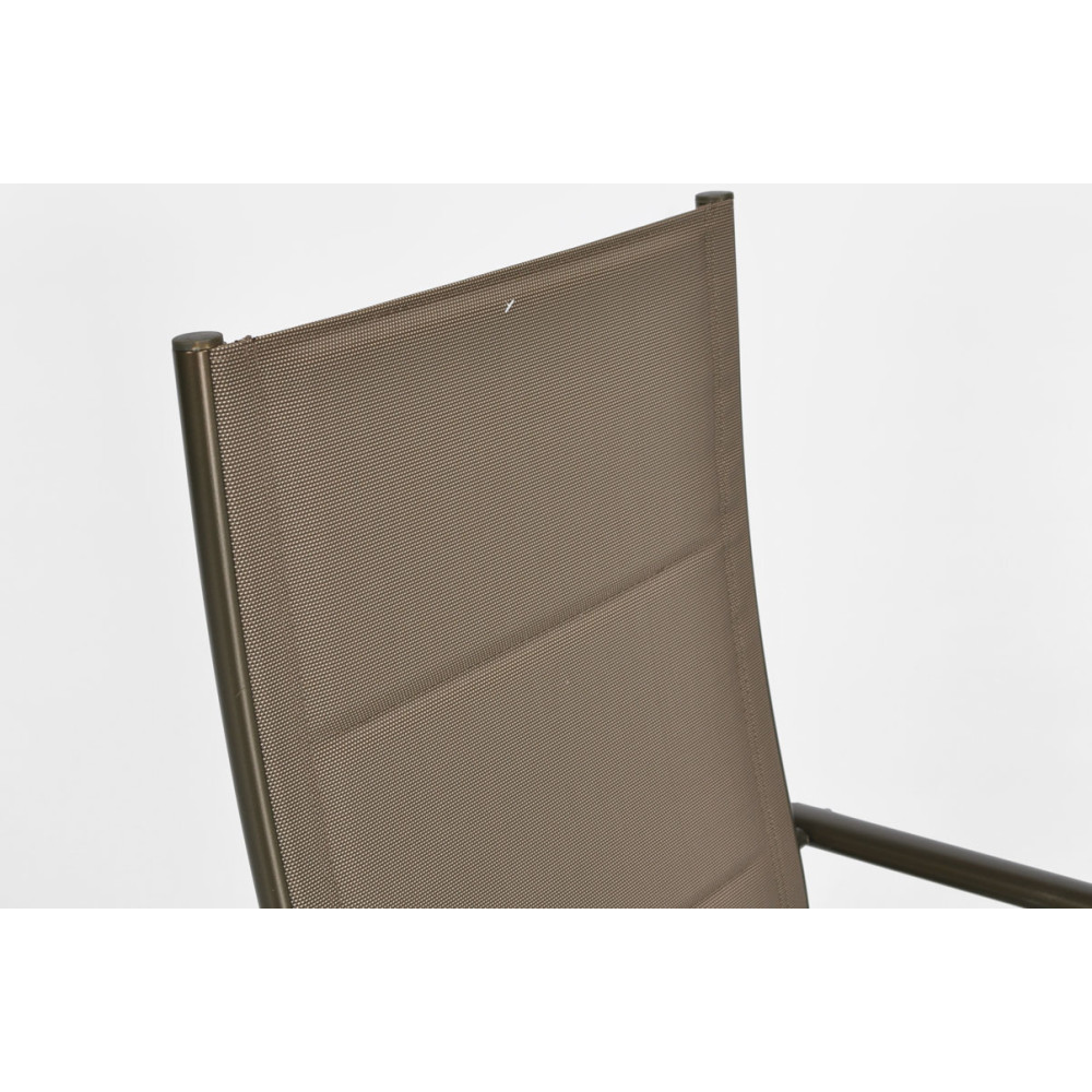 A light and very stable garden chair made of an aluminum frame painted silver. The seat is made of artificial and very durable gray material. Folding chair with armrests and adjustable backrest.