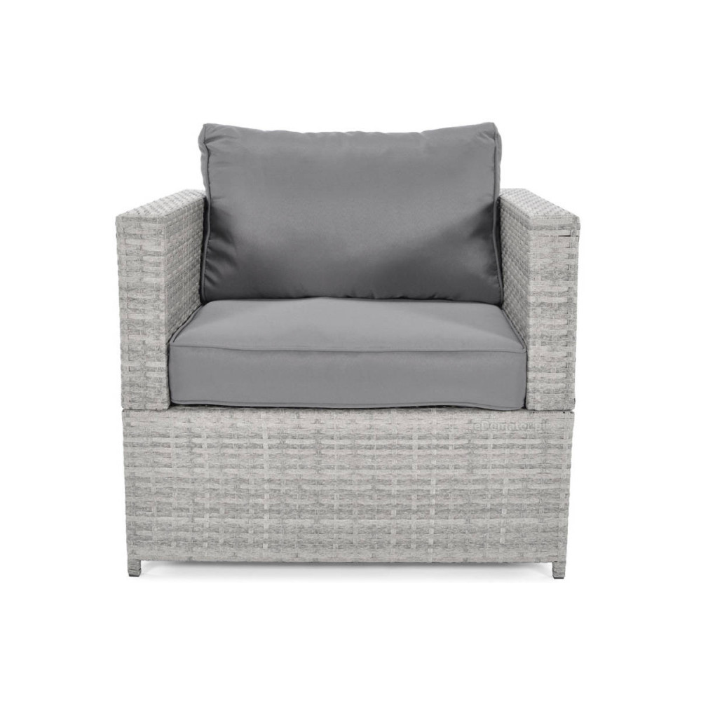 Garden armchair x 1, gray seat cushion with removable cover, gray back cushion with removable cover
