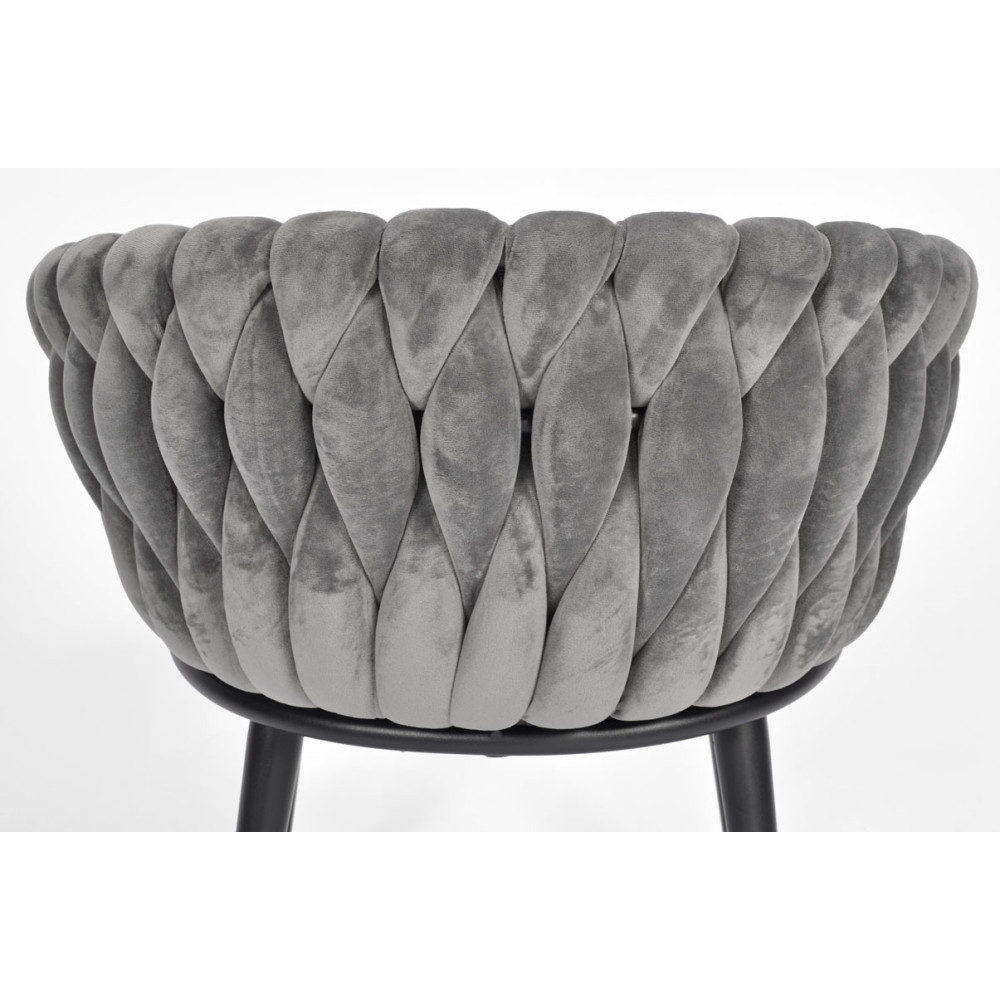 A velvet chair for the dining room, living room, office, bedroom or dressing table. A pink chair with armrests upholstered in velvet on black legs. Armchair with woven backrest for glamorous, Art Deco and modern styles. Pink and black upholstered chair