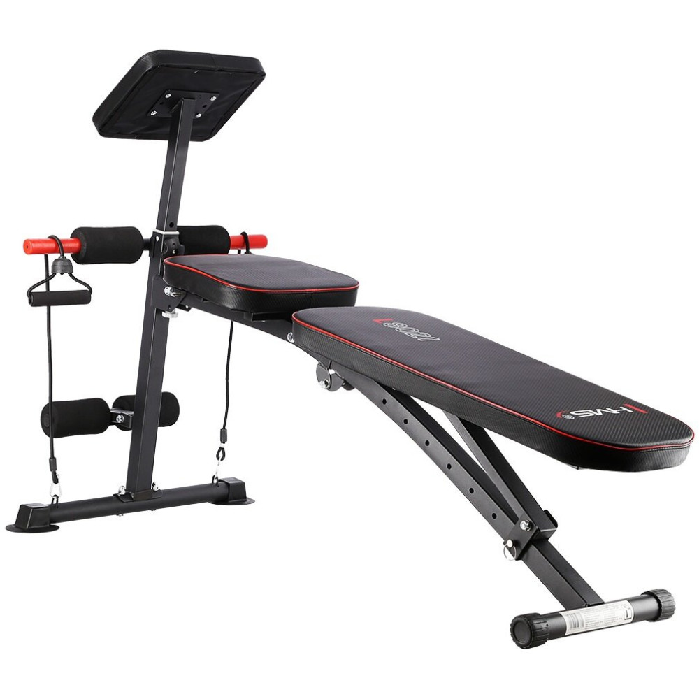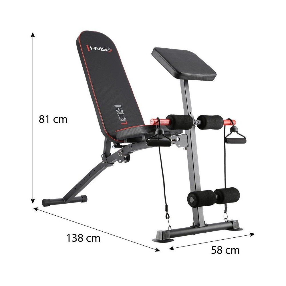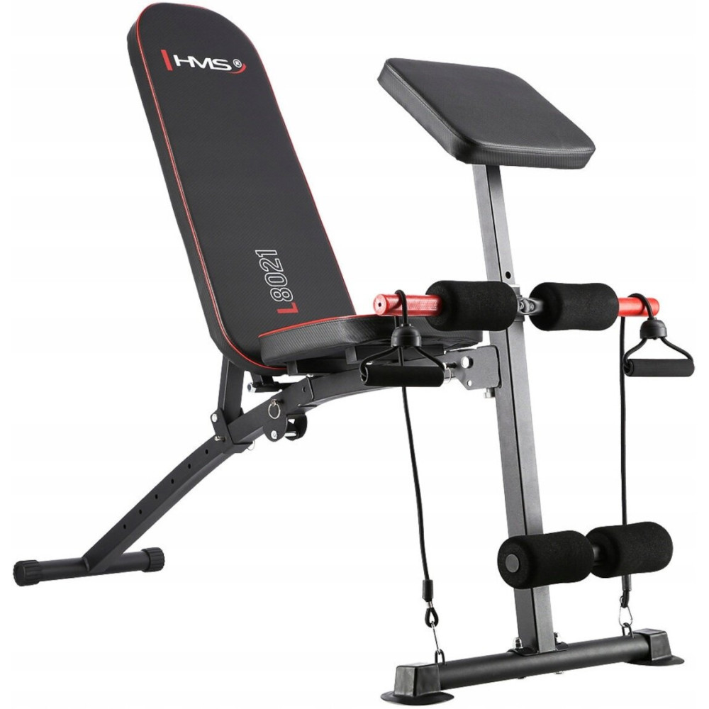 The HMS L8021 training bench is a great choice for a home gym. The equipment has a backrest with 7-step adjustment from -20° to 90°, an adjustable prayer bench, and the set also includes expanders, thanks to which you can diversify your training and try many new, advanced exercises.