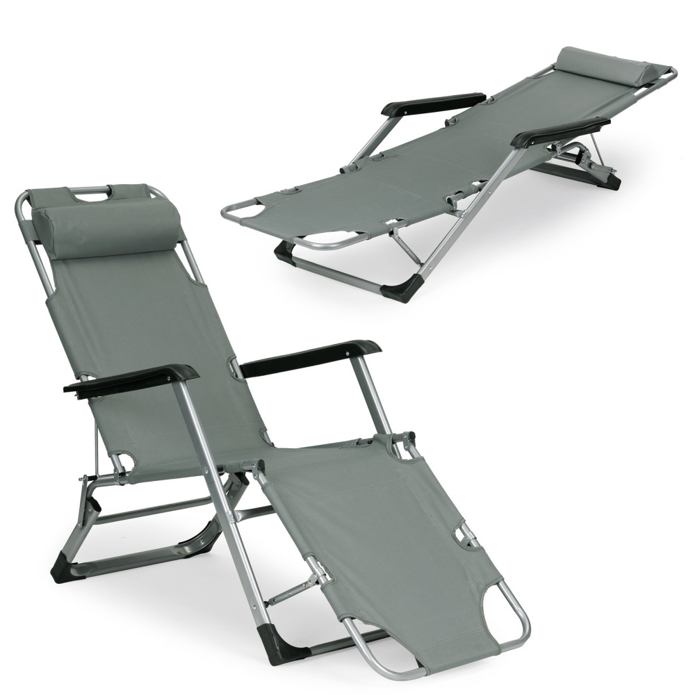 Beach Chair 2-in-1 Garden Lounge Chair | Folding lounge chair for balcony or patio Beige/Black/Blue/Grey |garden chair,