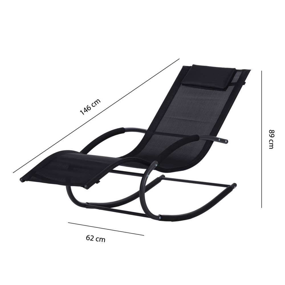 Garden Lounger with Headrest | Folding beach lounger for balcony or patio Black/Grey | Garden furniture