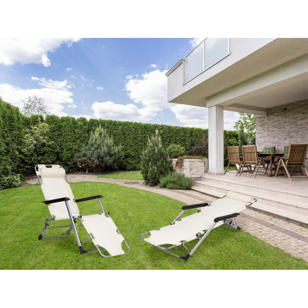 Beach Chair 2-in-1 Garden Lounge Chair | Folding lounge chair for balcony or patio Beige/Black/Blue/Grey | garden chair,