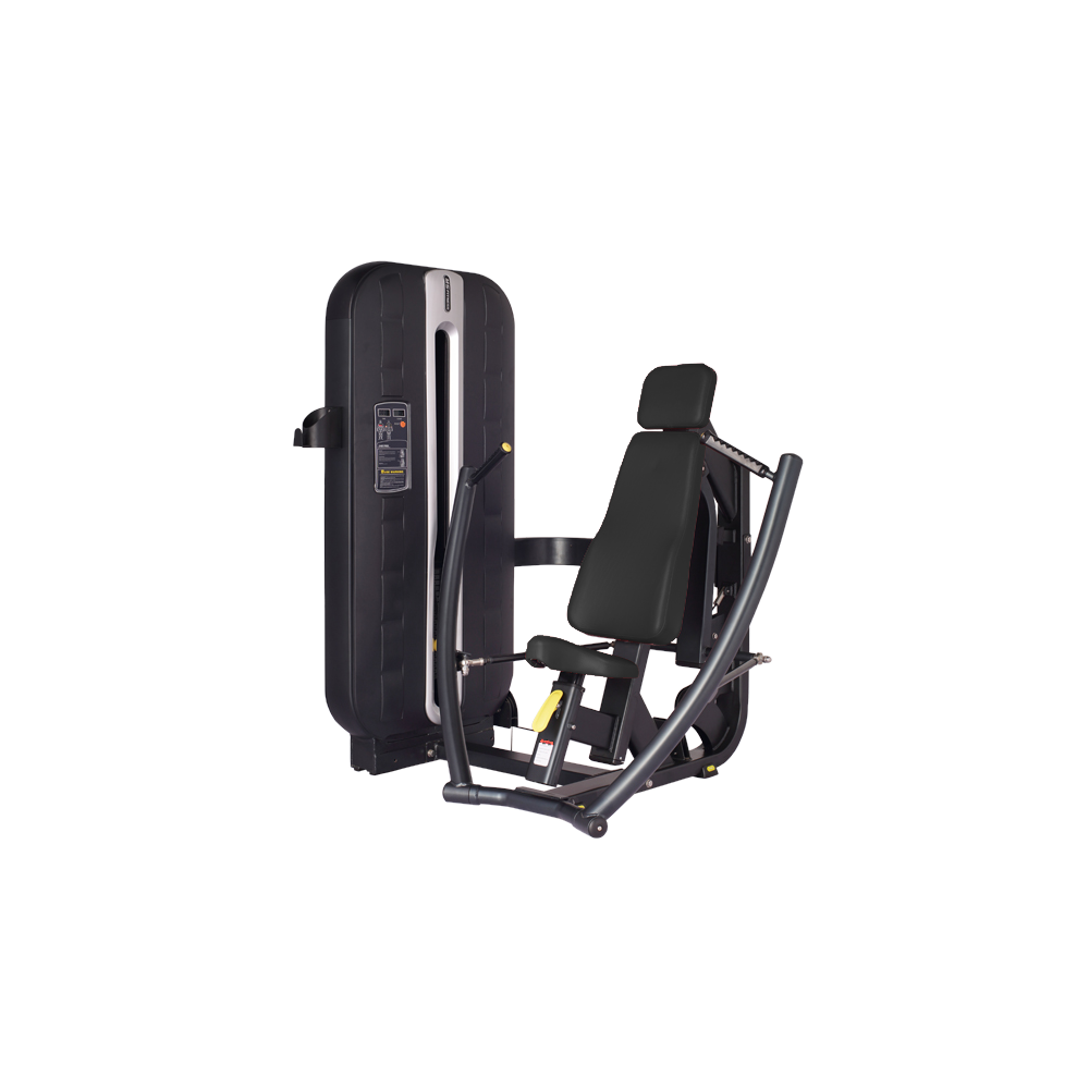 The chest training machine, seated press has a smooth seat adjustment, easy access to the stack and convenient load change. The comfortable grip guarantees full ergonomics of movement.