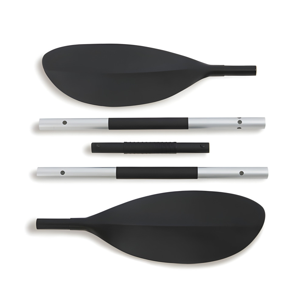 W zestawie z kajakiem są dwa aluminiowe wiosła, które zapewnią komfortowe wiosłowanie oraz precyzyjne manewrowanie kajakiem. Ich trwała i lekka konstrukcja pozwoli na wygodne użytkowanie przez długi czas, a ergonomiczne uchwyty zagwarantują pewny chwyt, nawet w wilgotnych warunkach.