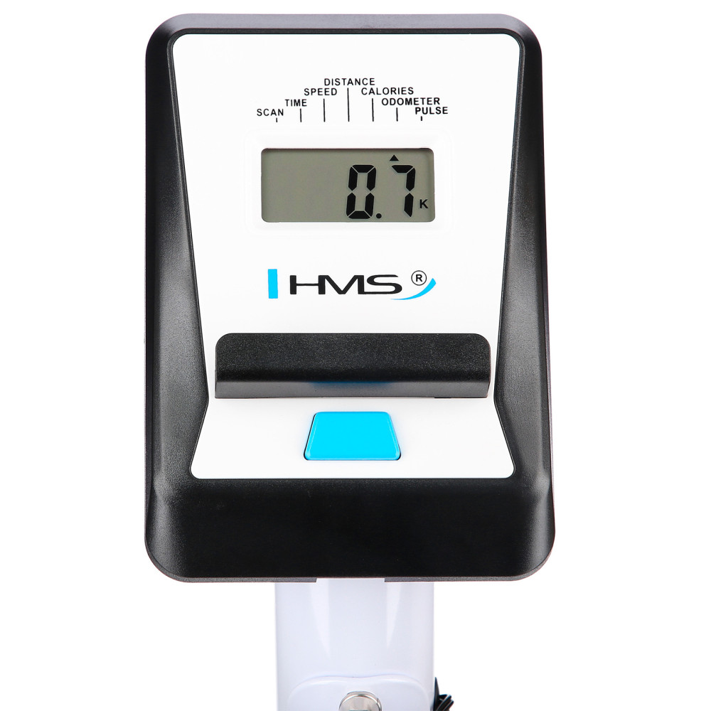 stationary magnetic bike M8750 HMS is fitness equipment that will be perfect during home training. Thanks to the magnetic resistance system, the exercises are quiet, and thus, they do not disturb other people in your environment. The product has an 8-speed resistance regulation, so we can adapt the training, to each level of advancement. The adjustment takes place in a simple way, using a knob attached to the steering column. A functional and modern computer, counts and presents all the most important training parameters, including: speed, time, as well as the number of calories burned. Adjustable saddle, Or comfortable pedals with adjustable stripes are another advantage, this extremely successful construction. In addition, this model has a mobile device holder, which will allow you to make your training more enjoyable, e.g. a movie viewed on a tablet.
