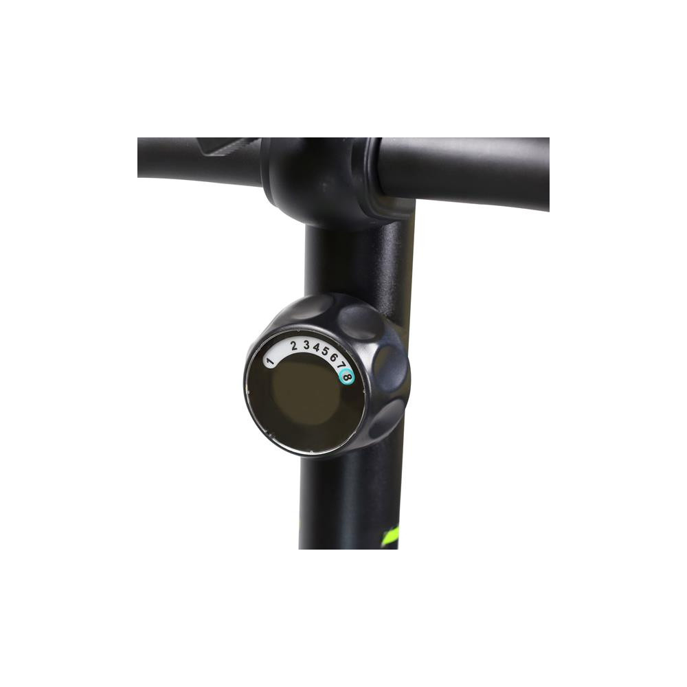 The bicycle is equipped with a flywheel weighing 9 kg, which enables training with greater loads. Thanks to the magnetic resistance system, the exercises are quiet and therefore do not disturb other people around you. In turn, a convenient knob allows you to adjust its value to the user's needs.