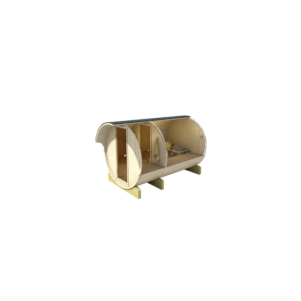 Barrel Outdoor Sauna 330 for 6 persons / Electric or Wood-Burning Harvia Stove / High Quality Scandinavian Spruce (Thermwood)