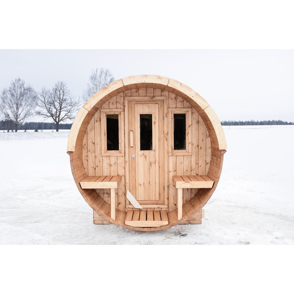 Barrel Outdoor Sauna 250 for 4 persons / Electric or Wood-Burning Harvia Stove / High Quality Scandinavian Spruce (Thermwood)