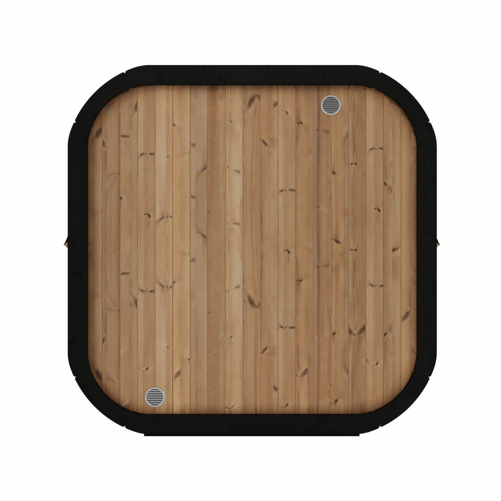 The cube-like design fits well even in modern gardens. This new design provides a better sauna experience as it has more space in the back than a standard barrel. The higher 2-tier benches provide a higher seating point, making the heat more concentrated for the sauna user.