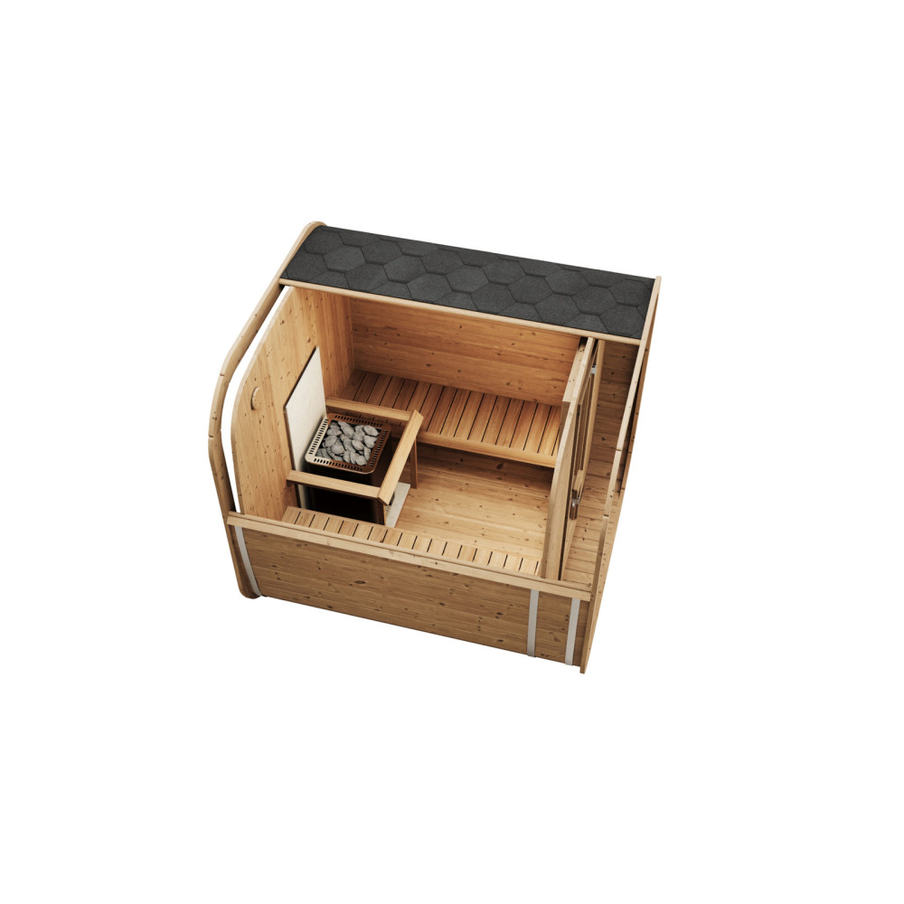 - Modern design - The cubic shape provides better comfort than traditional barrel saunas.
