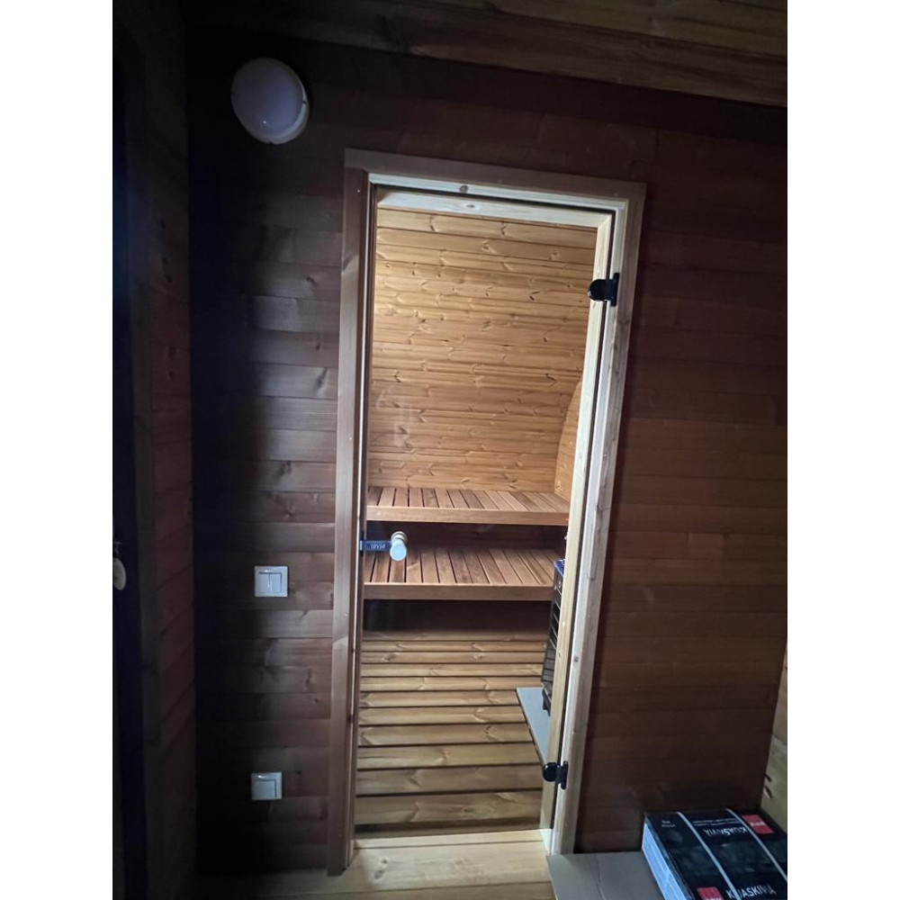 We present the Frodo 195 oval sauna, available with an electric heater or wood-burning stove from Harvia. Made from high-quality Scandinavian spruce and Thermowood, it ensures durability and aesthetics at the highest level.