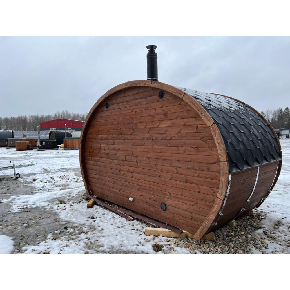 Oval Sauna Frodo 195 Outdoor for 8 people / Electric or Wood Burning Harvia Stove / High Quality Heat Treated Spruce