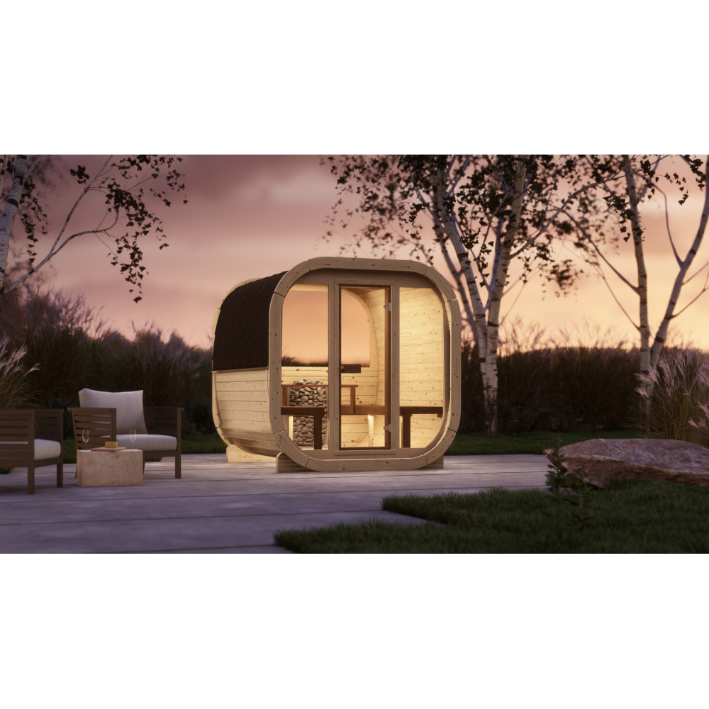 Sauna zewnętrzna Eke 220 dla 4-6 osób / Tylko ogrzewanie elektryczne / Wysokiej Jakości Świerk Nordycki ( Sosnowe Termiczne)