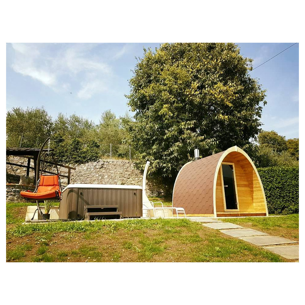 The Pod 300 sauna combines elegance and functionality. Its walls are made of high-quality thermowood or natural spruce, ensuring exceptional durability and an aesthetic appearance. For heating, you can choose a powerful electric wall-mounted heater or a classic wood-burning stove, which adds a unique atmosphere to sauna sessions.