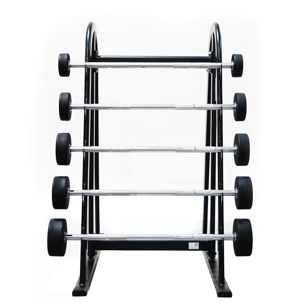 barbells made of high quality durable steel. The barbells have a simple griffin. The load part is covered with gum resistant to damage, which creates an aesthetic design. The barbells have grooved handles, which provides a comfortable and safe grip, and the barbells are confidently lying in the hands. The set includes barbells with a load of 10 kg to 55 kg. The load stroke changes every 5 kg. Each barbell allows you to effectively perform many exercises such as barbell squeezing in a narrow tappets lying, raising forearms in a narrow pump, bending the forearms on the prayer book.