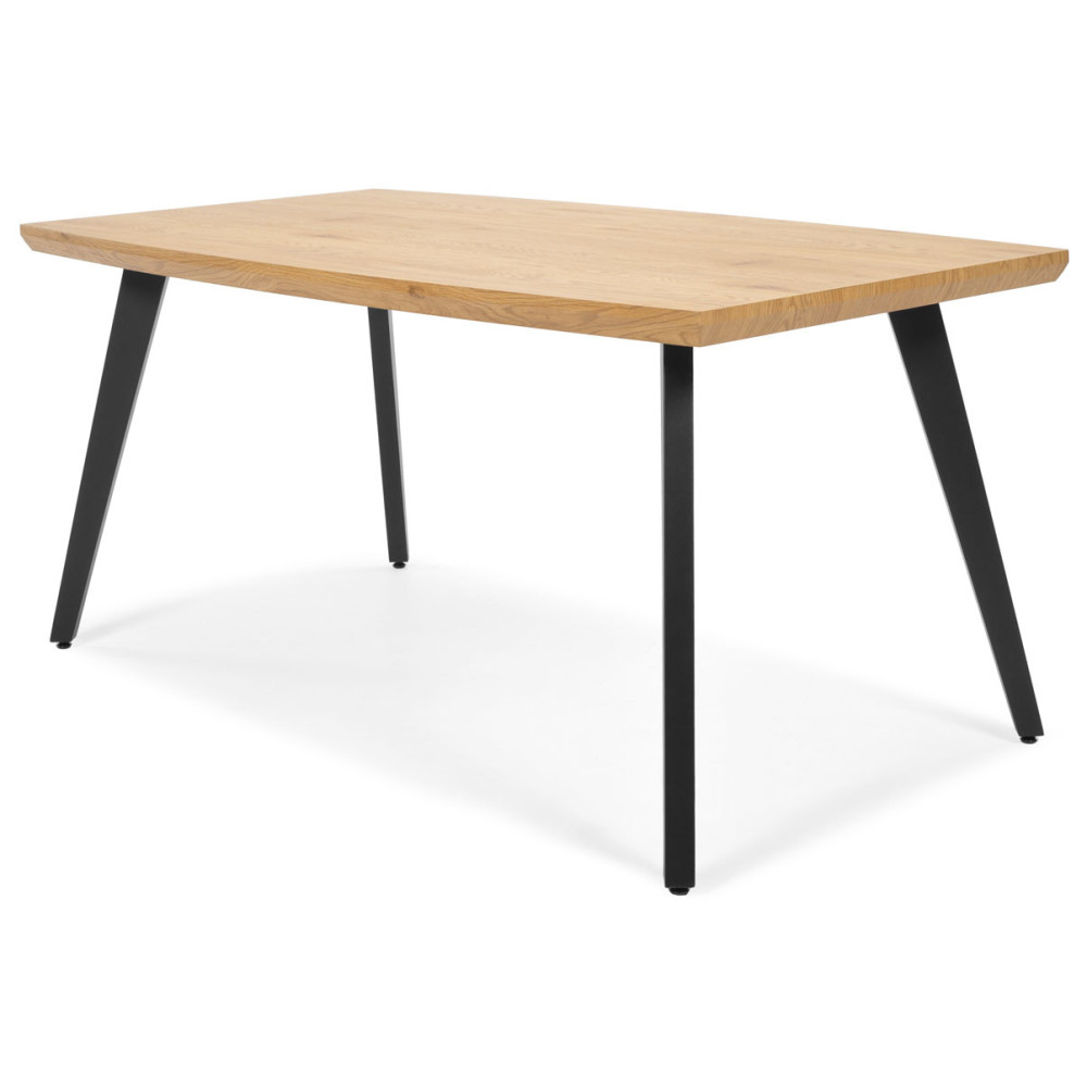 Elegante rechthoekige BREMA eettafel, lengte: 160 cm en breedte: 90 cm. Tafelblad van gelamineerd MDF-plaat in licht eikenkleur. Stalen poten zwart gepoedercoat.