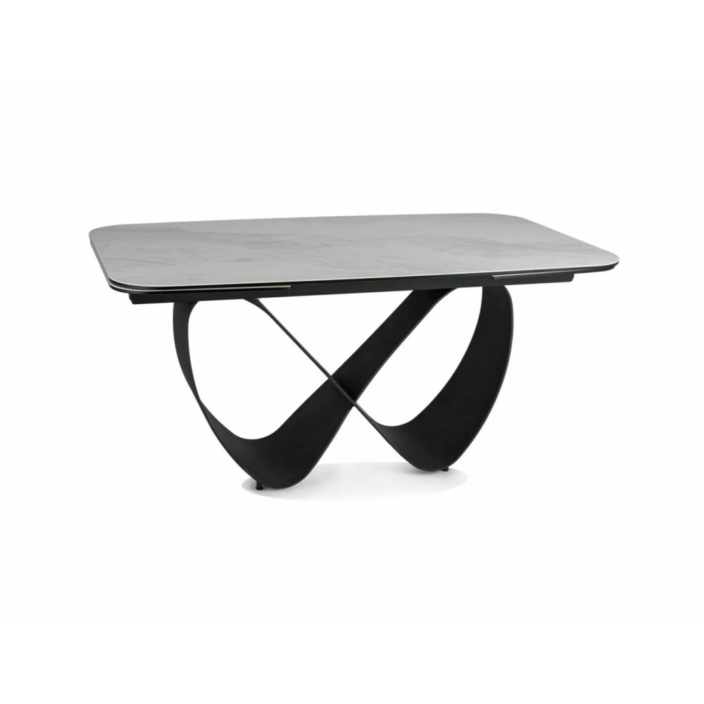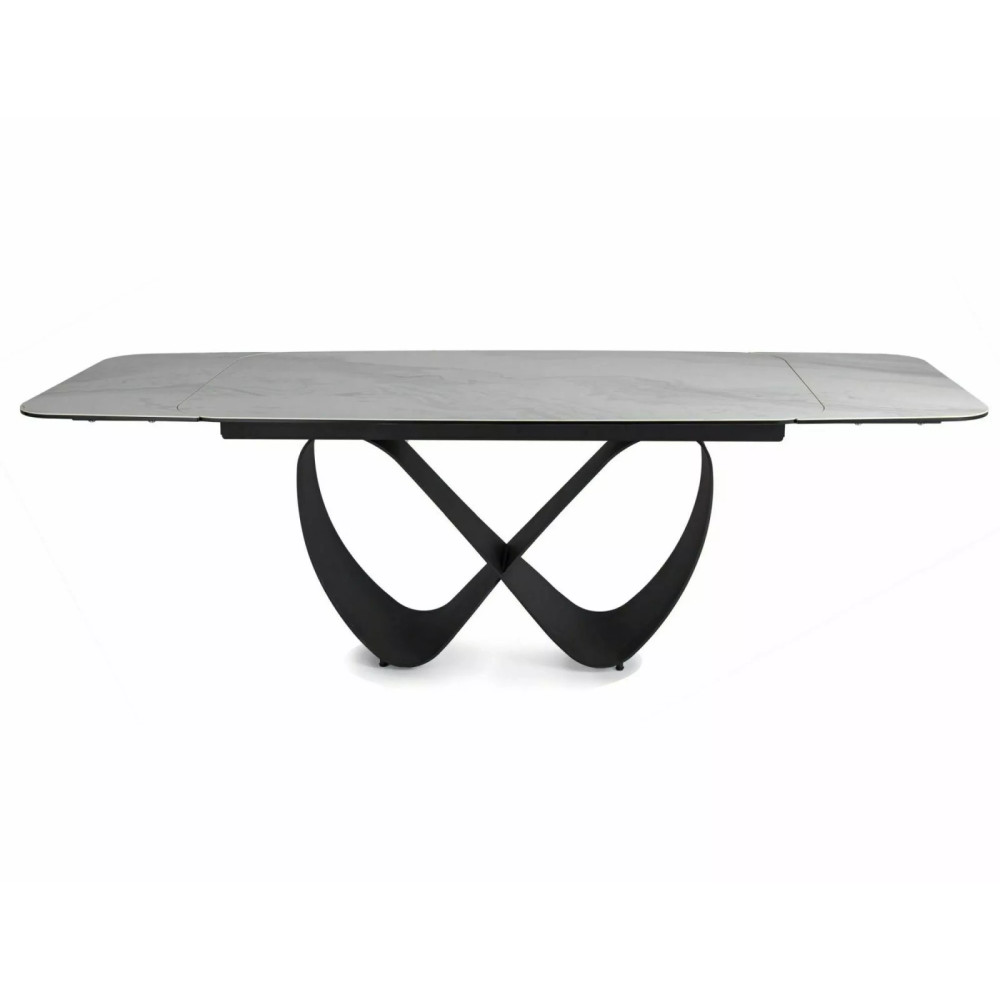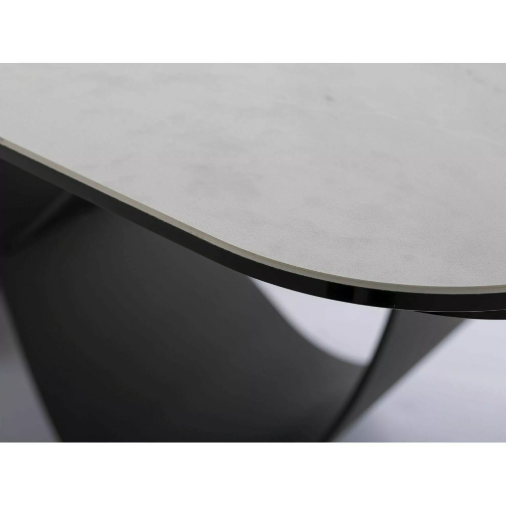 Extendable table, tabletop: tempered glass + ceramic NATURE CLOUD, frame: metal, color: matte white / matte black.