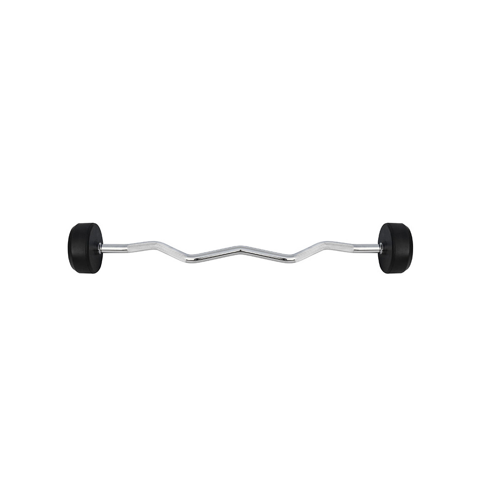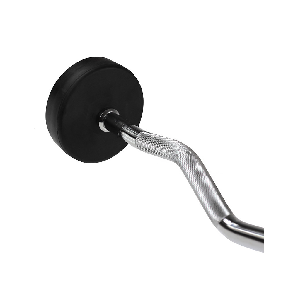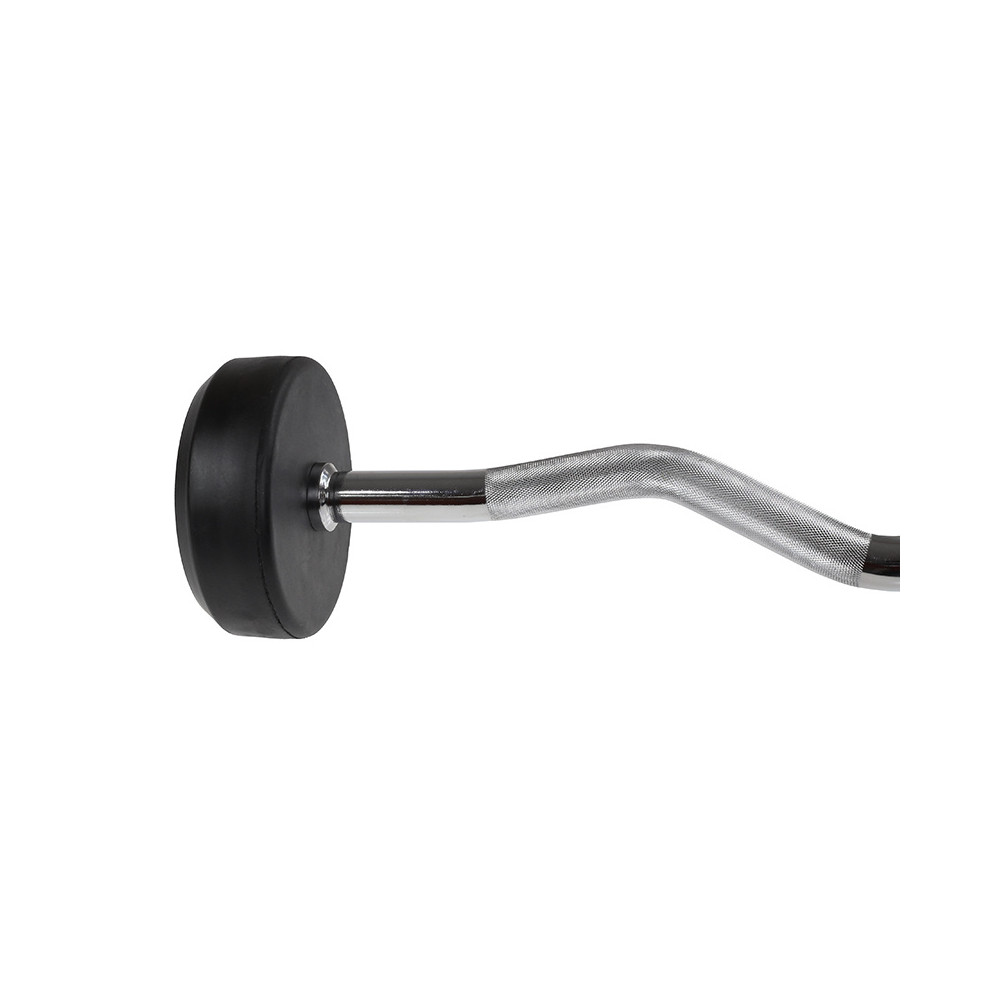 The GSL bent barbell/fixed bar will satisfy the most demanding users. The bar is made of high-quality hardened chrome steel. It has a knurled gripping part that allows for a firm grip. The weights are covered with a high-quality rubber coating.