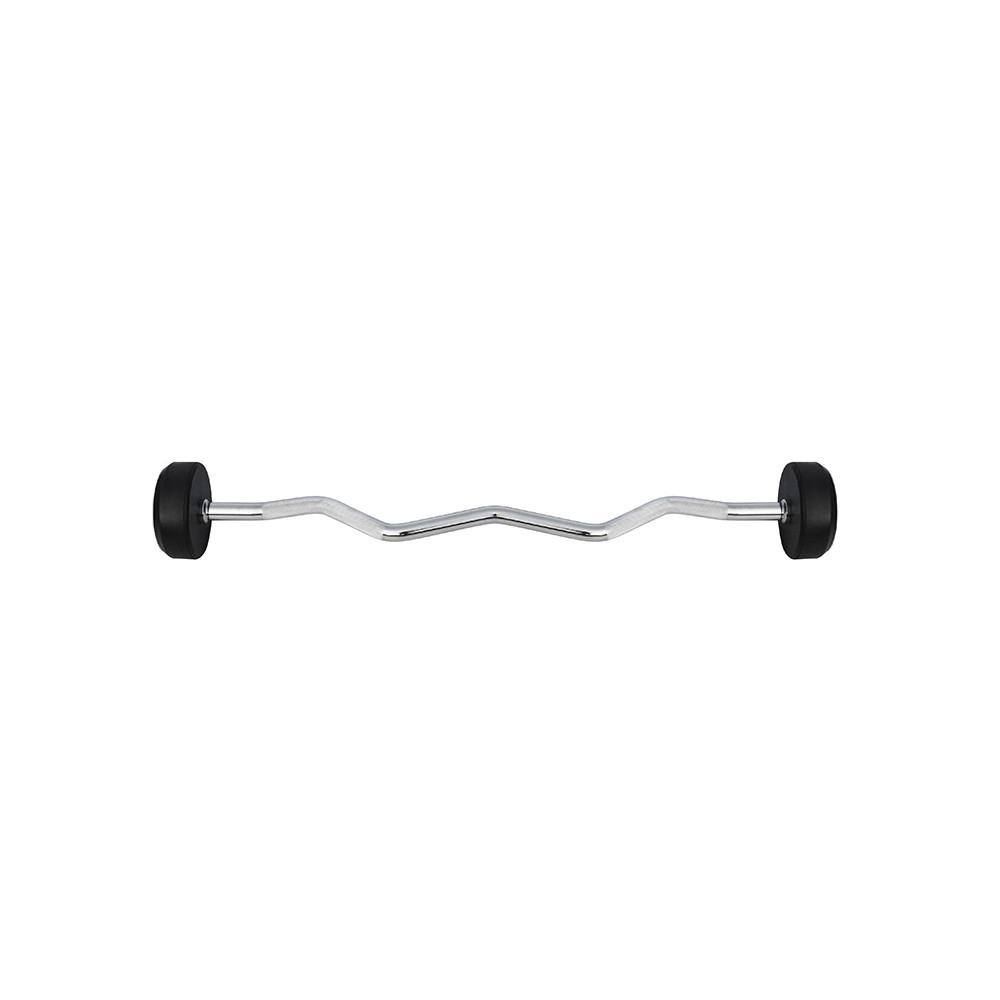 The GSL bent barbell/fixed bar will satisfy the most demanding users. The bar is made of high-quality hardened chrome steel. It has a knurled gripping part that allows for a firm grip. The weights are covered with a high-quality rubber coating.
