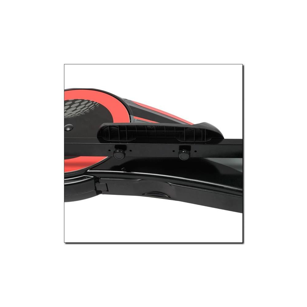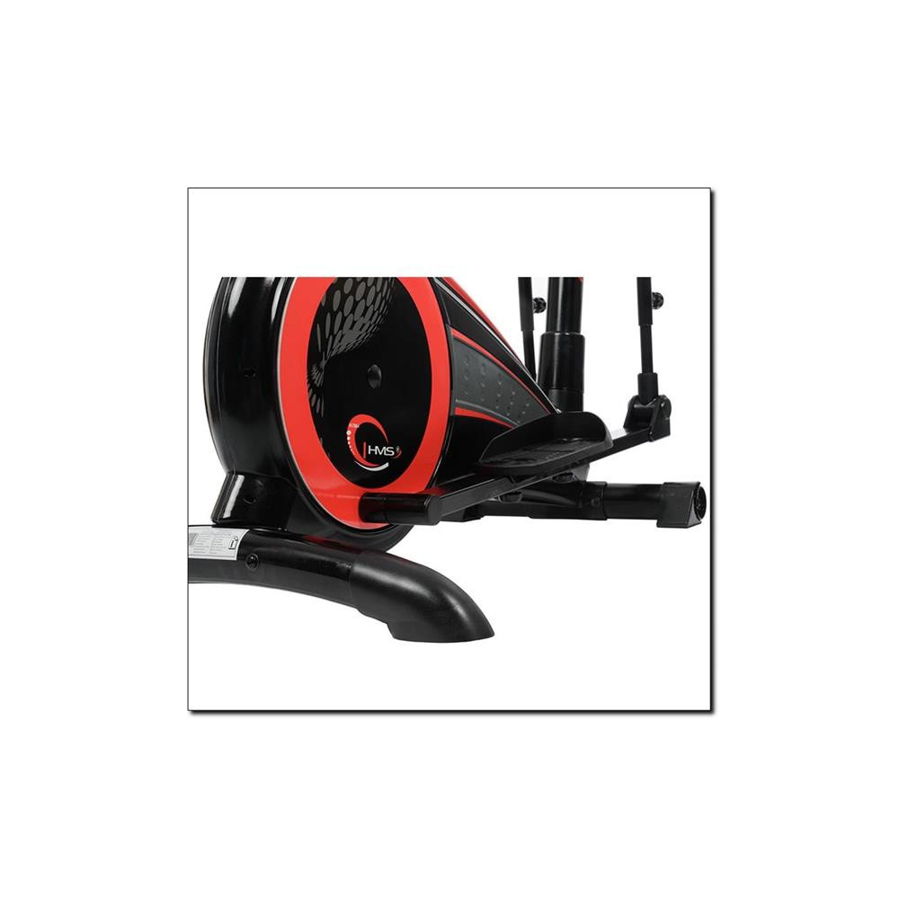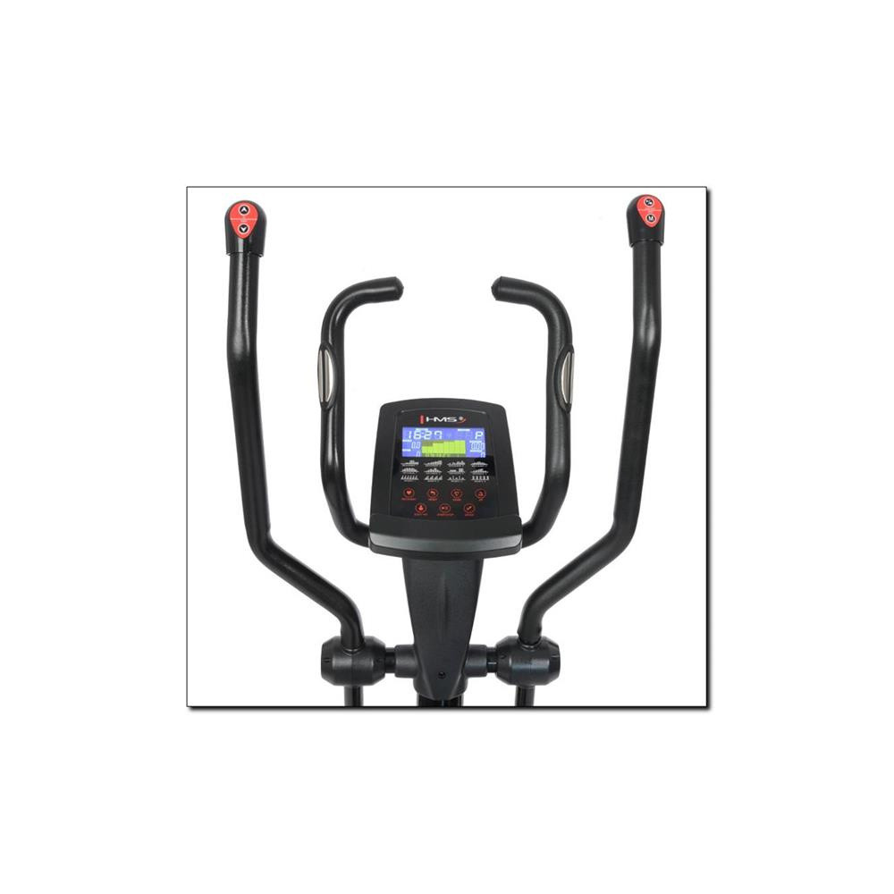 H1708i HMS is a high-class exercise device. The HMS brand product is characterized by a sporty and extremely dynamic design, the highest quality and a number of amenities. The device allows you to control the computer using special buttons placed on the sticks. The functional and modern display collects and presents all the most important training parameters. The user has 10 main functions at their disposal: Time (exercise time), Distance (distance traveled), Calories (calories burned), Pulse (pulse), Watt (power), Speed (speed), RPM (rotational speed), Manual (manual training mode), Cardio (exercise to increase heart rate) and Program (12 basic programs). These are: 4 beginner levels, 4 advanced levels, 4 sports levels. There are 18 programs in total. The magnetic elliptical trainer is equipped with an innovative computer with the ability to connect a phone or tablet running Android or iOS. Thanks to this, the user gains access to the free DelighTech Fitness APP. The software collects all necessary training data. Thanks to the magnetic resistance system, the exercises are silent - therefore they do not disturb other people around you. In turn, electronic load regulation allows you to change settings without having to break away from your training. The device has wide (12 cm), anti-slip steps (pedals) and vertical and horizontal step length adjustment, which ensures comfort for both tall and short users. Vertical adjustment allows you to increase the intensity of training, imitating running uphill. The steps have 3 adjustment options. To ensure maximum safety, all handles are covered with a special anti-slip material. The elliptical trainer is also equipped with Bluetooth technology, touch sensors for precise heart rate measurement and a USB port.