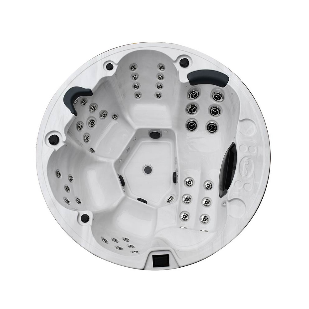 Introduction of the most relaxing and luxurious hot tub on the market-a rounded bathtub with hydromassage with a unique combination of seats, including a chair of a chair for the massage of the whole body.